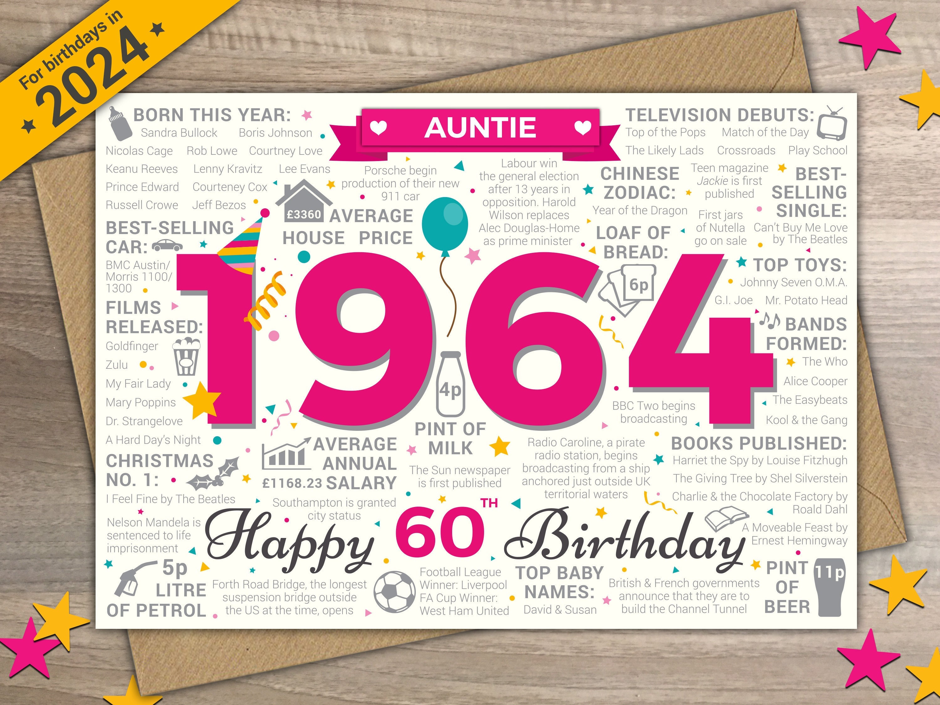 Source : www.laconiadailysun.com60th AUNTIE Happy Birthday Greetings Card Born in 1964 British