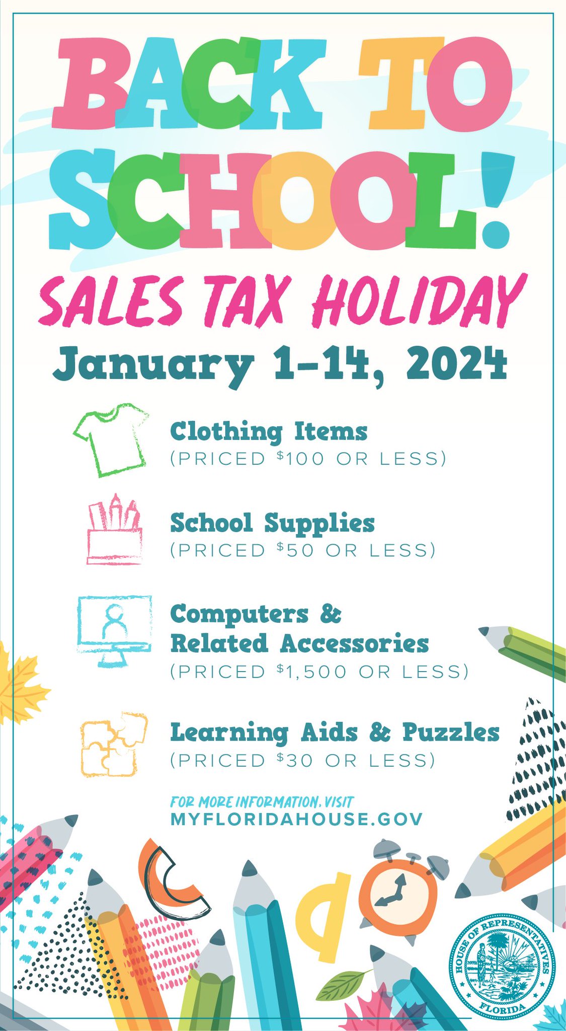 Source : floridarevenue.comFlorida Holiday January 2024 Second Florida Back To School Sales Tax Holiday Kicks Off January : Missing money! Mystery winners! Since Florida Lottery launched in 1988, over 30 jackpots, ranging from $1.2 million to $66 million, went unclaimed. . Florida Republicans have introduced a new bill that could require kindergarteners to learn about the “threat of communism.” .