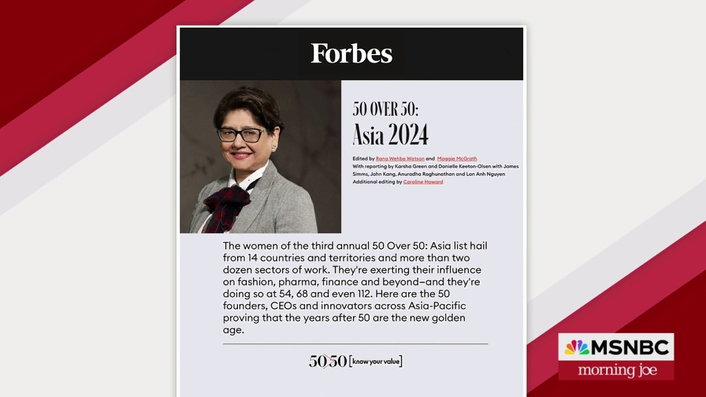 Source : www.msnbc.comForbes and Know Your Value release the ’50 Over 50′ Asia list